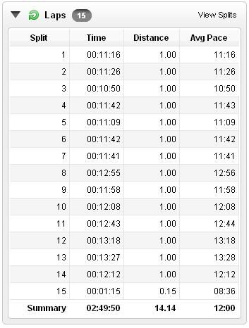 Check out the elevation in the first mile! Crazy! But other than the time when I walked for a few minutes to readjust my shorts, I actually ran the whole way up. Okay, sometimes I was seeing a 14:36 pace (isn't this walking pace?), but I was still running nonetheless. And I did it in 12:36.