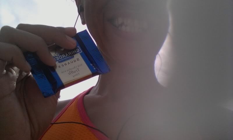 Hehe. Today was my scheduled long run (just 6 miles since it's a cut-back week), and I decided to hit the trails. And well, why not work on my tan while I'm at it? So, I bit the bullet and ran in just a sports bra, shorts and my shoes and socks. Now, don't get me wrong, I would never wear this while running on the streets or the gym. But it's so common to see males running sans shirt and women in a sports bra on the trails. Why not be one of them?