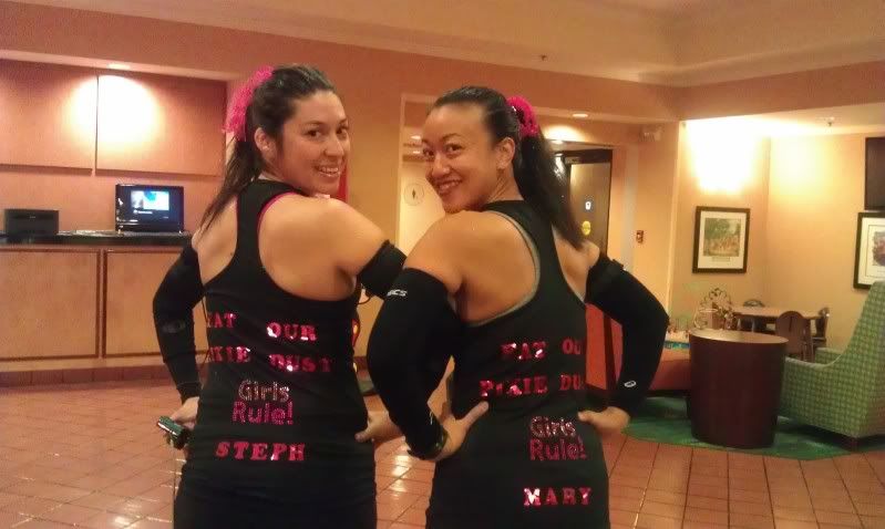 Steph and I left at 11:30 pm Friday night. We got to LA around 5 am, and she called the hotel and was able to get an early check-in time. Score! We got to the hotel a little before 6, napped for a few hours, then got breakfast and headed to the expo to pick up our bibs and Disneyland tickets. The expo didn't open until 10 am. Booooooo! That was two hours of Disneyland we would be missing. This 10 am expo opening was the only negative thing about this whole experience.