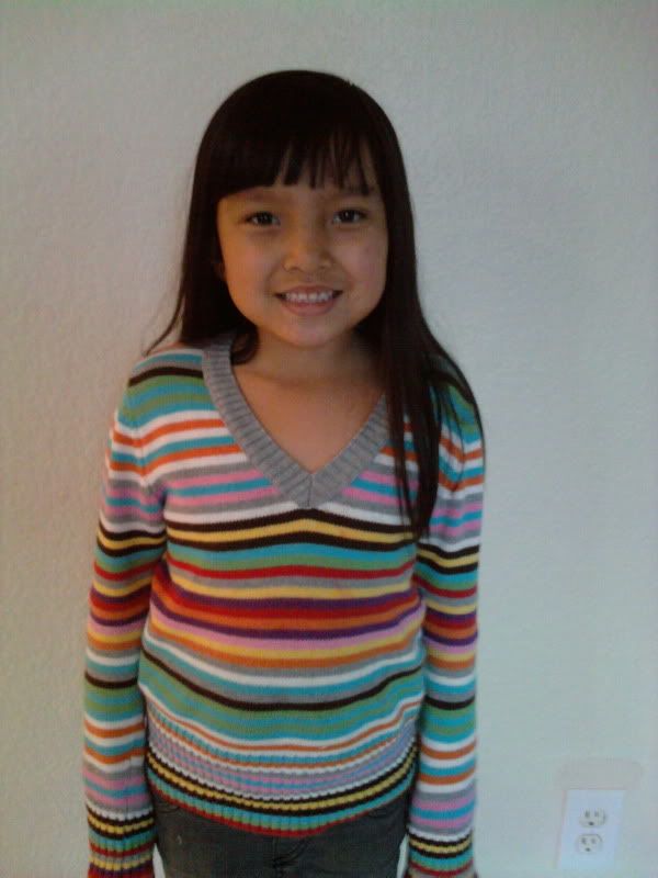 And just because I think she is the cutest thing ever with her new haircut, here is my daughter, Kaia. She wanted bangs like me. Love.