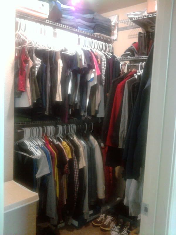 If you look in the first closet picture at the shelf on top, there are a ton of jeans that don't fit me. I have no issues getting rid of a $100 jacket or a $150 pair of boots, but for some reason I can't bear to part with $25 jeans.