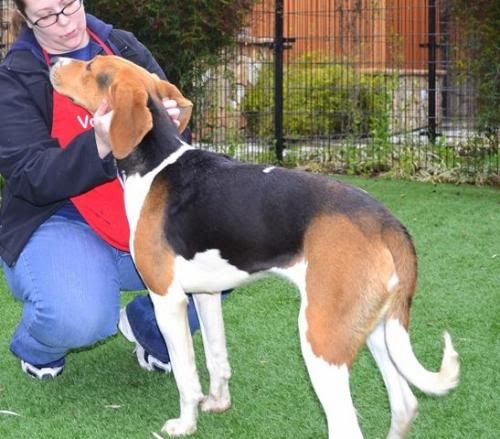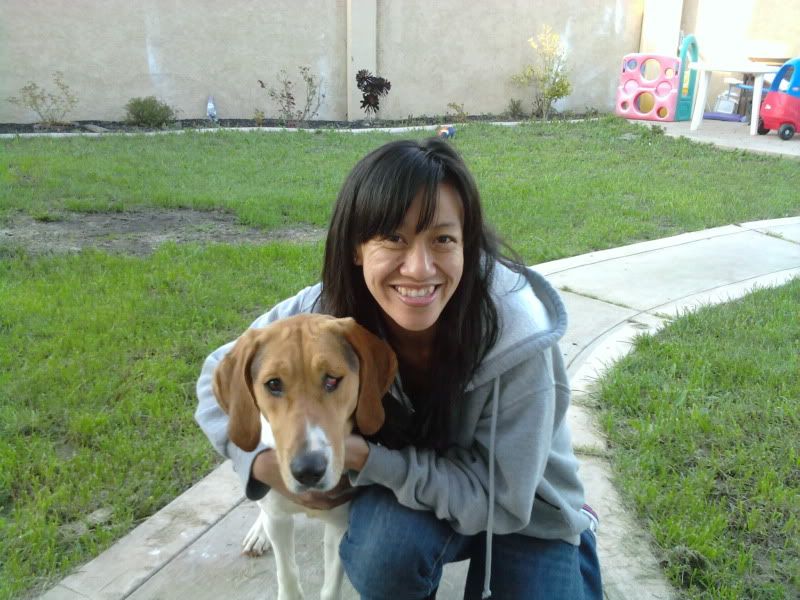 Martin and I went out to Sacramento today and adopted a dog! She's such a sweetie. She's a one year old treeing walker coonhound. She only has one eye (the lady who helped us said when she was only about 3 or 4 months a cat scratched her eye), but she is absolutely beautiful. They still need to spay her, so we can pick her up on Monday. I wanted to name her Sam, but I know my daughter wanted to name a dog if we ever got one. So I showed her a picture and asked her what she thought. She thought for a minute and said, "Kate, or we can call her Katie." I actually like that. She looks more like a Katie then a Sam.