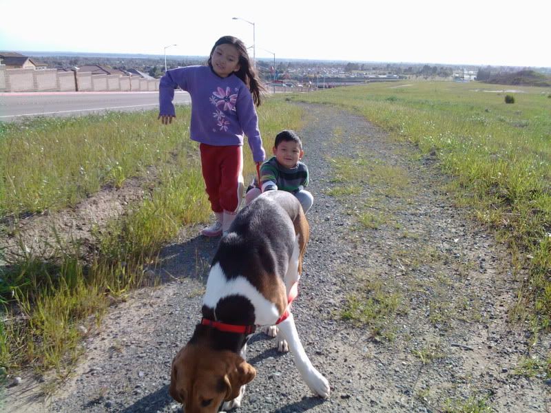 The kids and I took her on a walk in our neighborhood this morning. Please note that the children dressed themselves and I had no hand in their outfits.
